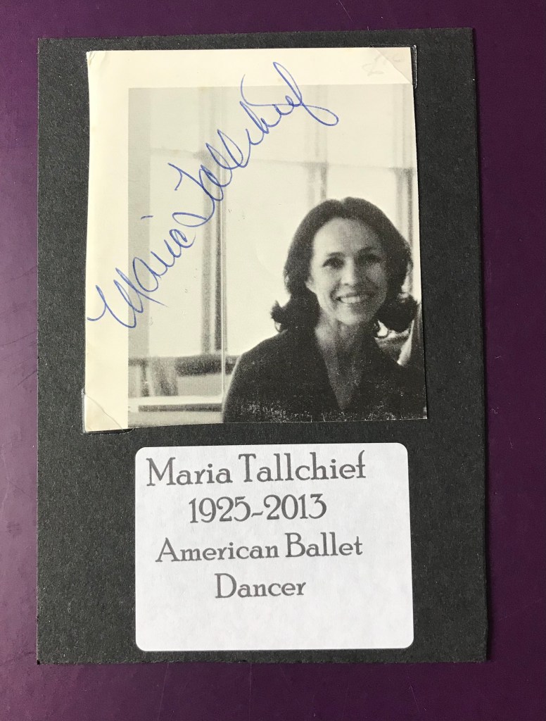 Autograph cut from a programme photo and stuck onto a piece of card. Acquired alongside a print of Tallchief as Odette in Swan Lake.