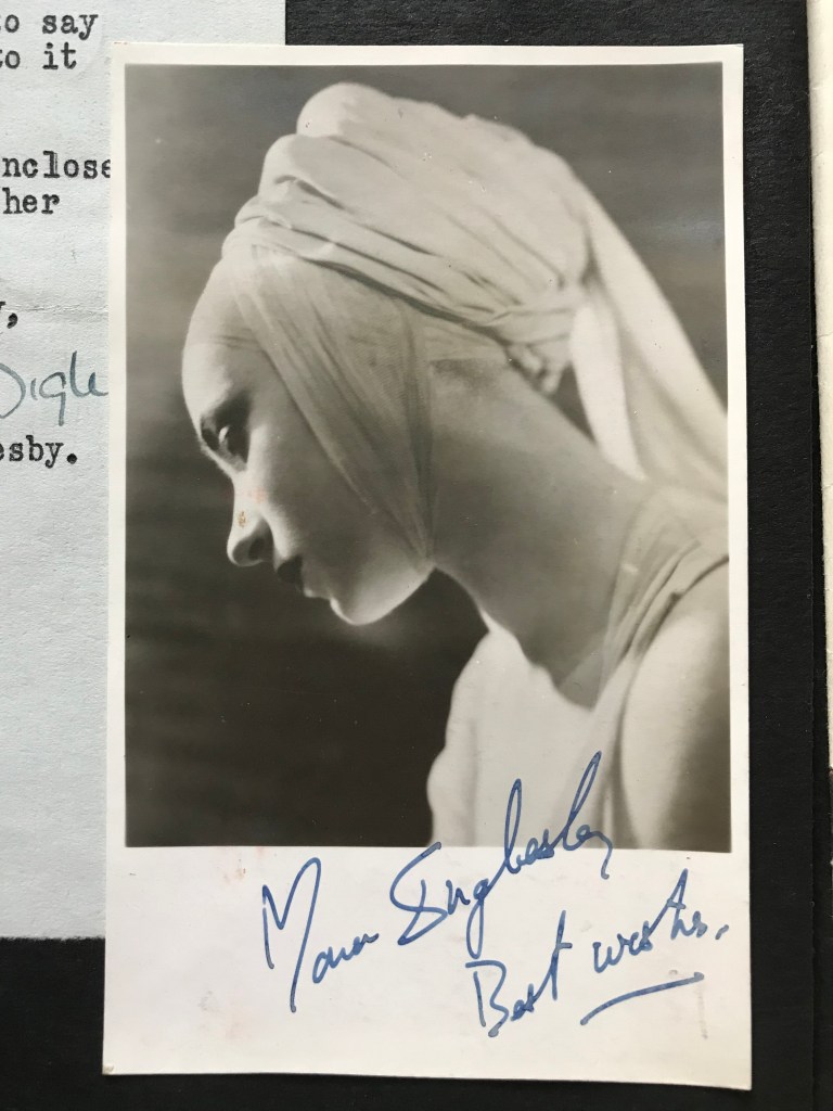 Enclosed to the original owner was a letter from Ms Inglesby’s secretary, June Digle, dated 9th May 1947 and written from the New Theatre, Oxford. Acquired as part of a scrapbook of ballet and dance programmes.