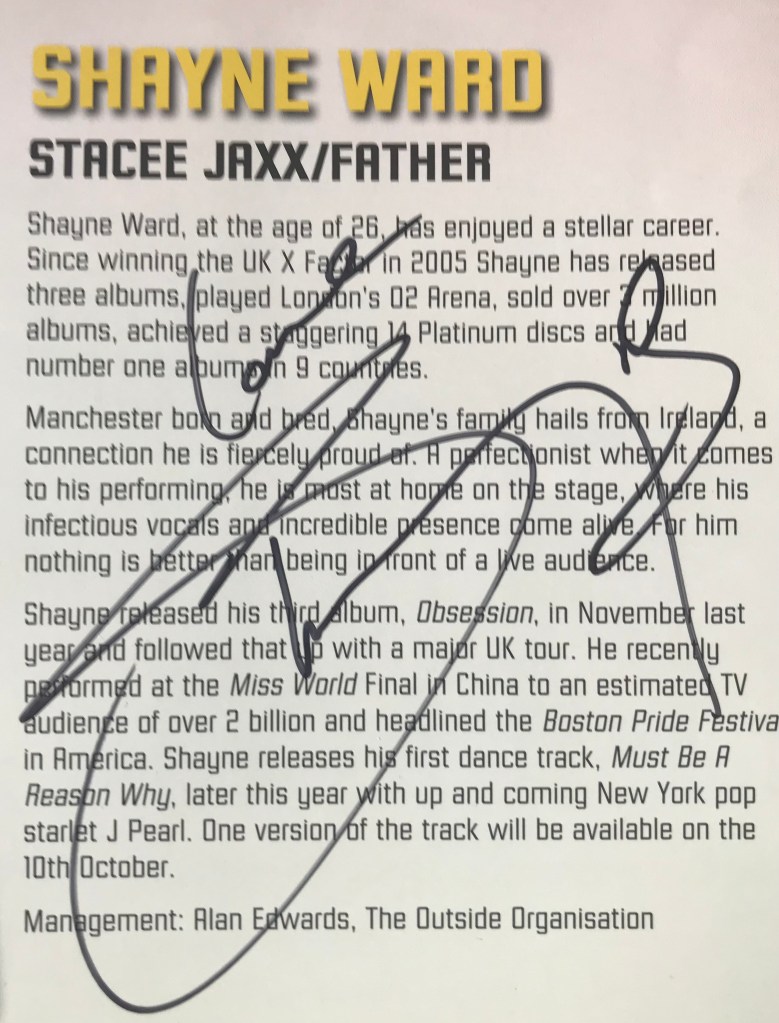 Signed By: Shayne Ward, Oliver Tompsett, Rachel McFarlane, Jodie Jacobs, Nathan Amzi